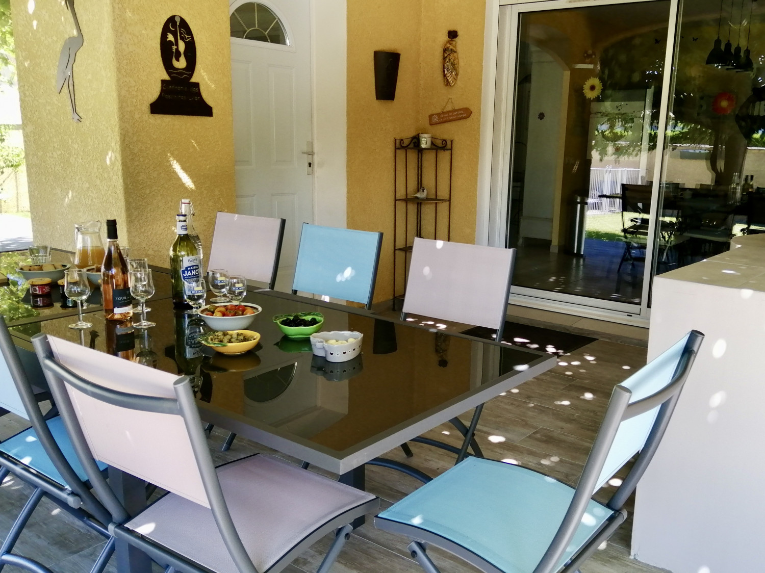 « La Bastide de Laura » connectée, de plain-pied, au plancher rafraîchi ou son espace climatisé, offre une cuisine équipée, 4 chambres, 3 salles de bain, une salle de lecture ou de jeux, un quotidien simplifié dans un univers et une décoration à l’image de la propriétaire : « Brocante girly »…
